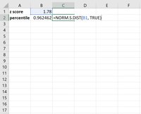 November 15, 2017 - ... Use the NORM.S.DIST function to convert Z Scores to Percentiles, as in the table below. The formula to calculate Percentile in cell C3 from the Z Score in B3 is =NORM.S.DIST(B3,TRUE)