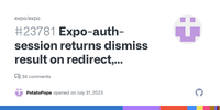 July 31, 2023 - It seems like expo-auth-session registers the window switch as if the user had exited/cancelled the authentication flow. I suspect this happens the moment the user is directed to the authentication flow, not when the user is redirected back to the app. Normally dismiss happens when a user exits the login flow halfway, however in this case the login is completed successfully.