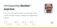 GitHub - chrispauley/docker-express: This is a hello-world app for an expressjs server inside a docker image. Created from egghead.io tutorial.