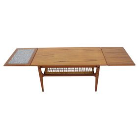with beautifully crafted joinery. Made from hardwood the coffee table also has an extendable side panel ... Mid-Century Modern teak table with extending leaves.