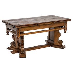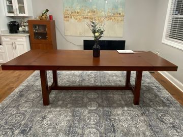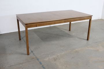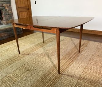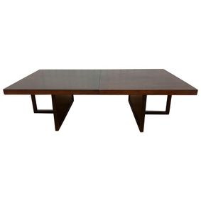 Width: 54"-72"Depth: 19"Height: 14"Condition Notes:In great vintage condition with wear consistent with the age and use of the coffee table. The tabletop and sides have been stripped, sanded, cleaned, stained, and refinished. The legs have been cleaned and touched up where needed. The sliding mechanism works well. There are some shallow scratches and minor nicks throughout the table from years of use (see photos for examples). More photos can be provided upon request.