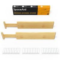 SpaceAid 4“ High Bamboo Deep Drawer Dividers for Kitchen, Clothes and Bathroom with 2 Dividers (17-22 in)