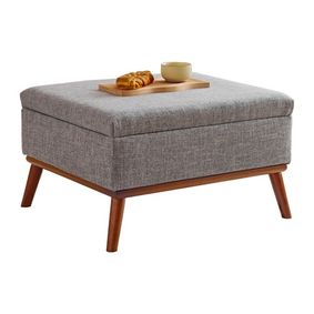 With its modern silhouette and rounded corners, it infuses texture and dimension into any space. A solid and engineered wood frame with mortise and tenon joinery adds lots of durability. High-density foam padding and a plush fabric of your choice make this piece a convenient, comfortable spot to kick up your feet or have a seat. Versatile, this upholstered ottoman serves as a coffee table, extra seating, or a footrest.