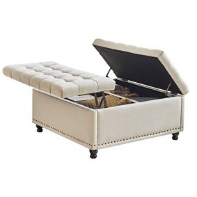LARGE STORAGE SPACE - Store all of your items with ease. This ottoman provides ample storage space with its lift-off lid that will keep all of your things safely tucked away. In addition, you can also store extra pillows or throws inside! TRAY TOP COFFEE TABLE: Enjoy the convenience of a functional coffee table with a unique twist, perfect for holding drinks, snacks, and more.