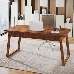 Wood Executive Desk, 63" Large Writing Desk with Storage-Tribesigns