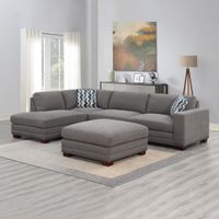 Hendley Fabric Sectional with Ottoman, Color: Gray, Material: 100% Polyester, Hardwood Frame Construction, 4 Accent Pillows Included