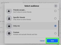 November 24, 2024 - You can set each of these items ... them), Friends (only your Facebook friends), Only me (no one except you can see), Close friends (people you mark as a close friend), Specific friends, or Friends except (friends that you choose). Use the following steps to adjust who can see your profile information from the Audience Settings menu: Click or tap Profile information....
