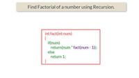 July 19, 2024 - In the above code, the factorial function calls itself with number-1 until the number is greater or equal to 1. For each recursive call, the function returns the product of the number and factorial(number-1). If the number is less than 1, it returns 1, which is the base case for factorial calculation.