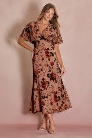 Shop fall wedding guest dresses at Lady Black Tie — velvet, floral, long-sleeve, maxi, midi, and mini styles perfect for October, November, and autumn weddings.