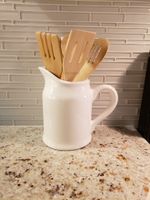 September 27, 2022 - Pitcher is from hobby lobby Farmhouse bamboo utensil holder hobby lobby dollar tree white kitchen · Jennifer Meza · Explore · Home Decor · kitchen · 111 Pins · 2y · Dollar Tree Utensil Holder · Rae Dunn Love Pitcher · Rae Dunn Milk Pitcher Target · Farmhouse Utensil Holder Ideas ·