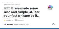 Hey guys, if you're looking for a fast, open source, and completely free UI for Whisper, please consider trying my app EasyWhisperUI.