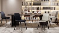 Discover a range of faux leather dining chairs with sturdy frames and plush cushions. Elevate your dining space with modern, versatile designs.