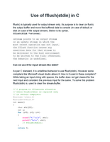 Consequently, portable code does not use fflush(stdin). Code that is tied to Microsoft's platform may use it and it may work as expected, but beware of the portability issues.