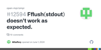 June 1, 2024 - You signed out in another tab or window. Reload to refresh your session. You switched accounts on another tab or window. Reload to refresh your session. ... Thank you for taking the time to submit an issue! ... It appears to me that fflush(stdout) has no effect, where previously it would cause the stdout buffer to flush as one might expect.