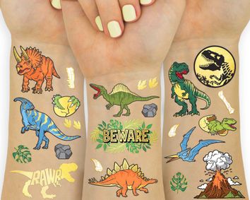 Amazon.com : xo, Fetti Dinosaur Tattoos for Kids - 36 styles | Dino Fossil Birthday Party Supplies, T-Rex Party Favors, Stegosaurus Decorations, Easter Basket, Arts and Crafts, Activity : Beauty & Personal Care