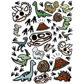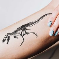 Make your way into a super fun party with this colorful set of temporary tattoos! 2 sheets totaling 36 tats means there's enough for everyone - no dinosaur gets left behind! :) Elevate your party with these tattoos that feature all sorts of dino party essentials: fossils, T-Rex, Stegosaurus, Triceratops + more!