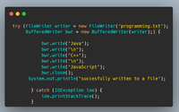 From this type coding, you can see/learn the hierarchy of exceptions. If you want to execute your program whether caught exception or not, you can use finally block. Where you will close your writer.