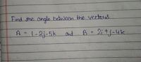 [FREE] Find the angle between two vectors: \mathbf{A} = 5\mathbf{i} + \mathbf{j} \mathbf{B} = 2\mathbf{i} + - brainly.com
