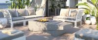 Blending style and durability, the Fire Pit Table features ceramic spheres for heat efficiency and is constructed with sustainable Glass Fiber Reinforced Concrete to withstand the elements.