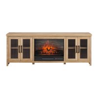 With two side cabinets boasting multiple shelves for storing your media accessories and an open compartment for a sound bar or cable box, you can finally find a home for those old DVDs or video game consoles. And the fireplace TV stand’s cabinet doors also feature interchangeable door panels with options like wood, clear tempered glass, and metal mesh, so you can customize your TV stand’s complementary accents to your liking.