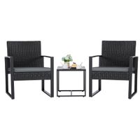 Flamaker 3 Piece Patio Set Outdoor Wicker Furniture in Black | eBay