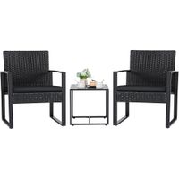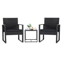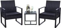 Flamaker 3 Pieces Patio Set Outdoor Wicker Furniture Sets Modern Rattan Chair Conversation Sets with Coffee Table for Yard and Bistro (Black) | Bigbigmart.com