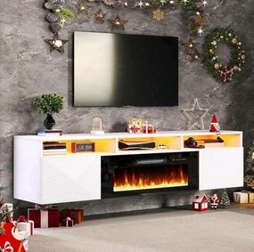 Sleek Must-have 70'' Floating TV Stand– Built-N Fireplace, LED Lights, Easy PlugOpens in a new window or tab ... 70'' Fireplace TV Stands, 3-Sided Glass Entertainment Center Console TableOpens in a new window or tab