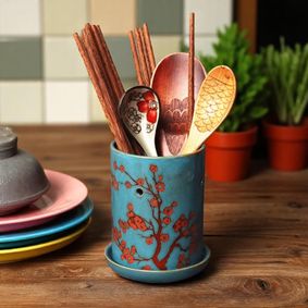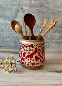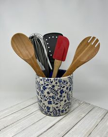 Elevate your kitchen organization with the charm and functionality of a handmade ceramic utensil holder. Crafted with love and attention to detail, this artisanal piece becomes a focal point on your countertop, showcasing your favorite kitchen tools in style. The smooth, glazed surface of the holder