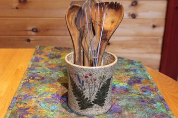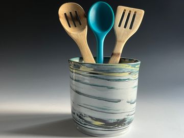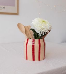 Tidy (and liven) up your countertops with this handmade ceramic utensil holder. Also doubles as vase!