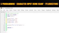As far as flushing the input buffer (stdin), you should not do that. Flushing stdin is undefined behavior according to the C11 standard §7.21.5.2 part 2: