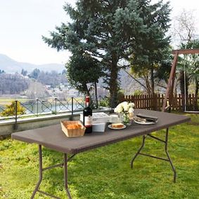 Costway 6 ft Portable Folding Table with Wood Grain HDPE Tabletop Safe - See Details · Sale $65.98 · Labor Day Sale · Average Rating: 0.0 Stars · 0 · Folding Camping Grill Table with 4 Side Tables, Mesh Storage Net, Lightweight & Portable ...
