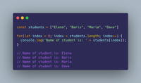 for (var i = 0; i < xs.length; i++) { console.log(xs[i]); }xs.forEach((x, i) => console.log(x));for (const x of xs) { console.log(x); }