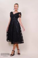 Goddiva Sequin Lace Short Sleeve A-Line Midi Dress - Black ...