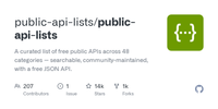 A curated list of free public APIs across 48 categories โ searchable, community-maintained, with a free JSON API. - public-api-lists/public-api-lists