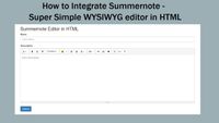 hi, we are summernote. please, write text here! super simple WYSIWYG editor on Bootstrap Β· Simply download and attach your js, css with bootstrap. Customize by Initializing various options and modules. See all useful features of summernote in action. Summernote is licensed under MIT and maintained by the community.