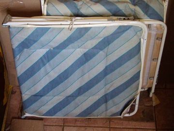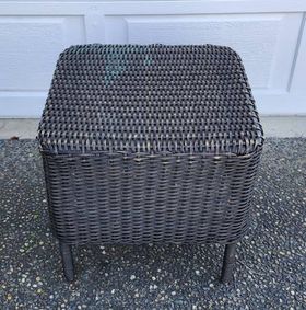 FREE patio furniture - outdoor side table, storage boxes · $0 · Weston · Free patio chair- needs new fabric ·