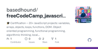 GitHub - basedhound/freeCodeCamp_javascript-algorithms-and-data-structures: 🎓 Certification – 20+ JavaScript projects: variables, arrays, objects, loops, functions, DOM. Object oriented programming, functional programming, algorithmic thinking, local storage, API data fetch.