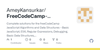 GitHub - AmeyKansurkar/FreeCodeCamp-JavaScript-Solutions: Complete solutions for the freeCodeCamp JavaScript Algorithms and Data Structures - Basic JavaScript, ES6, Regular Expressions, Debugging, Basic Data Structures, Basic Algorithm Scripting, Object Oriented Programming, Functional Programming, Intermediate Algorithm Scripting, JavaScript Algorithms and Data Structures Projects