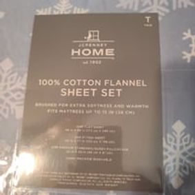 JCPenney Home Collection Flannel Twin Sheet Set "Vail" 100% Cotton New 3 PC SET · $43.20 · NOS Vintage Penney's Twin Bed Fitted Strong Muslin Sheet 100% Cotton 39" x 75" $13.10 · JC Penny Home Queen Sheet Set · $65.00 · SOLD · 100% cotton full size bed sheet set · $12.00 · JCP Flannel Sheets Twin Set NEW solid bl · $31.89 · JCP Flannel Sheets Twin Set NEW solid cr · $35.49 · NOS Vintage Penney's Percale Sheets Double Bed Size ·