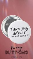 A sarcastic quote for the witty and wise. Take my advice I'm not using it pinback button can be customize or purchased as is. Buy it for yourself, your friend, your parents... anyone would love this hilarious gift. Browse an assortment of products and sayings by clicking the link. Wisecrack gifts | Funny ...