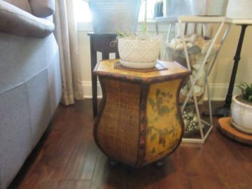 Accent tables made by high end Palecek Furniture · $30 · Kyle · New accent tables-NEW IN BOX · $35 · Kyle · California King size platform bed frame 14" tall-NEW IN BOX · $75 · Kyle · Pair of glass lamps-REDUCED · $40 · Kyle · Colorful Mexican Fiesta framed artwork REDUCED ·