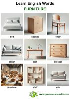 ESL Printable Furniture Vocabulary Worksheets, Picture Dictionaries, Matching Exercises, Word Search and Crossword Puzzles, Missing Letters in Words and Unscramble the Words Exercises, Multiple Choice Tests, Flashcards, Vocabulary Learning Cards, ESL Fidget Spinner and Dominoes Games