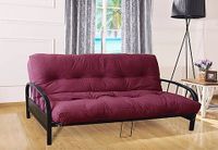 Introduce your home to modern style with this black metal futon frame with mattress. Crafted from durable black metal, this futon cradles a plush 8" mattress in your choice of black, blue, burgundy, camo, or green. Transition quickly and easily between sofa and bed; transform your home in an instant!