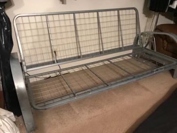 We want to have a fold-up sofa-bed, futon style. We don't want one that comes as a full-on couch, with the mattress built in -- we want to have a metal frame with a separate mattress. It occurred to me that one way of doing this would be to buy a futon sofa and toss the legs, just using the two...