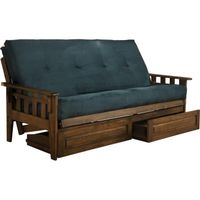 Tacoma Rustic Walnut Futon Frame with Suede Navy Mattress & Storage Drawers - Full Size - Walmart.com