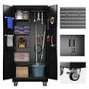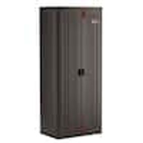 The HDX Multi-Purpose Tall Cabinet accommodates supplies of various sizes. You can store 5 levels of gardening tools, paint supplies and automotive gear in this sturdy storage solution. The heavy duty plastic material resists rust, scratches, dents and peeling for lasting performance.