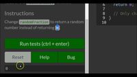 # --instructions-- Change `randomFraction` to return a random number instead of returning `0`. # --hints-- `randomFraction` should return a random number. ```js assert(typeof randomFraction() === 'number'); ``` The number returned by `randomFraction` should be a decimal. ```js assert((rand...