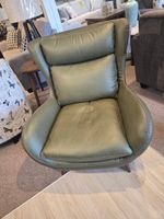 Add a touch of timeless style and comfort to your space with this beautifully designed accent chair. Upholstered in smooth olive green genuine leather, it features plush cushioning on the seat, back, and headrest — all perfectly contoured for support and relaxation.