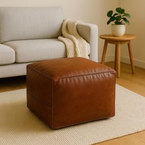 Crafted with a solid wood frame and upholstered in premium full-grain Italian leather, this versatile ottoman offers a spacious surface ideal for extra seating, a footrest, or coffee table. Its foam-filled interior provides comfortable cushioning while the leather finish develops a unique patina ...