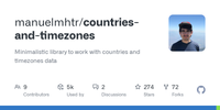 Note, that there is an n x m relation between Countries and Timezones (hence a Timezone may live in multiple countries). Therefore this package also contains a getCountriesForTimezone() method.